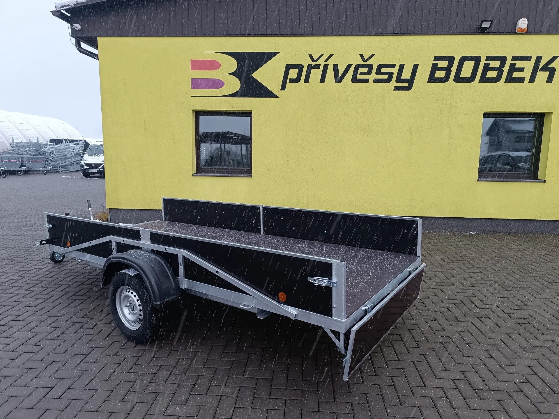 Brzděný přívěsný vozík s vnějším rozměrem korby
