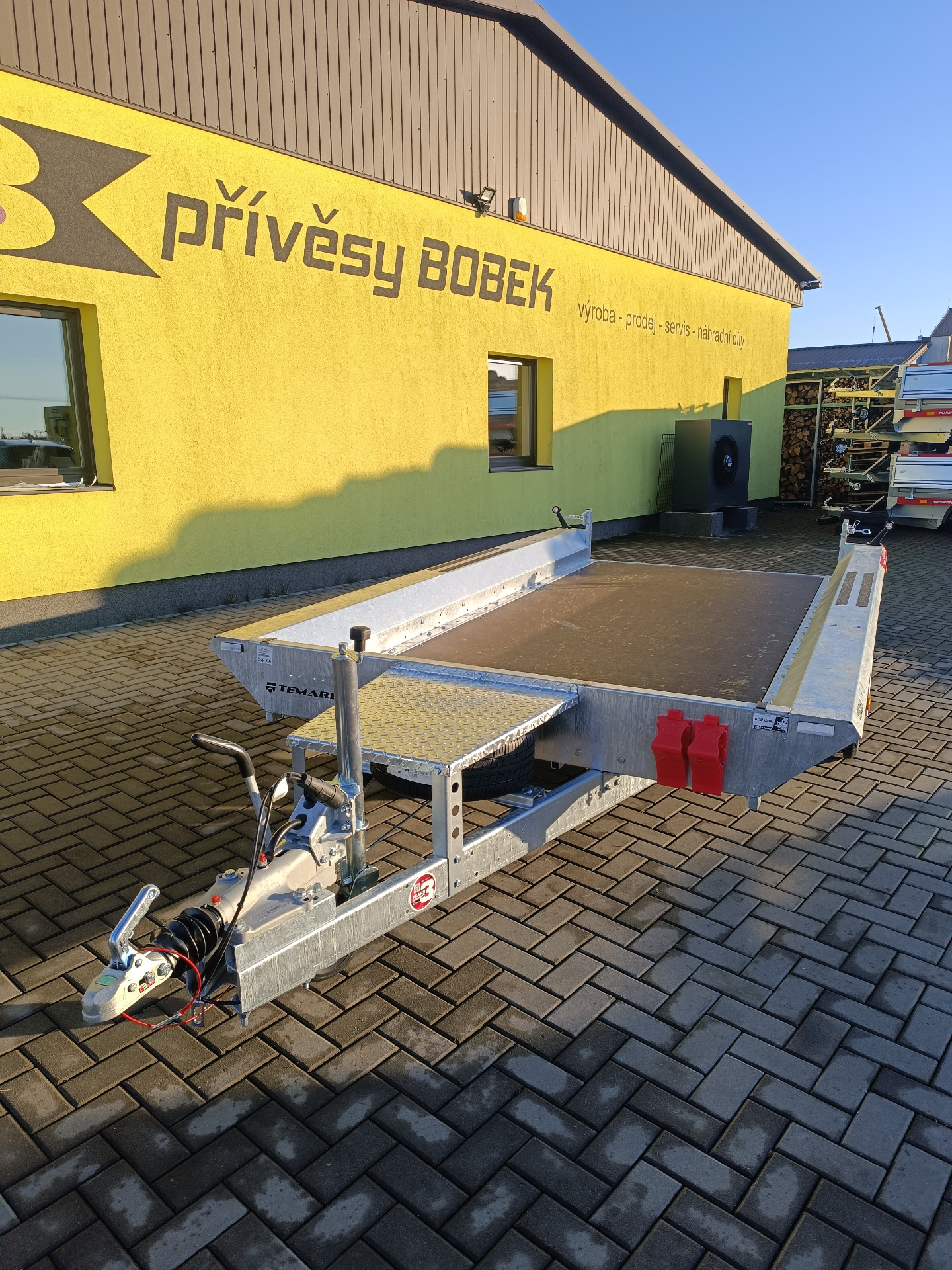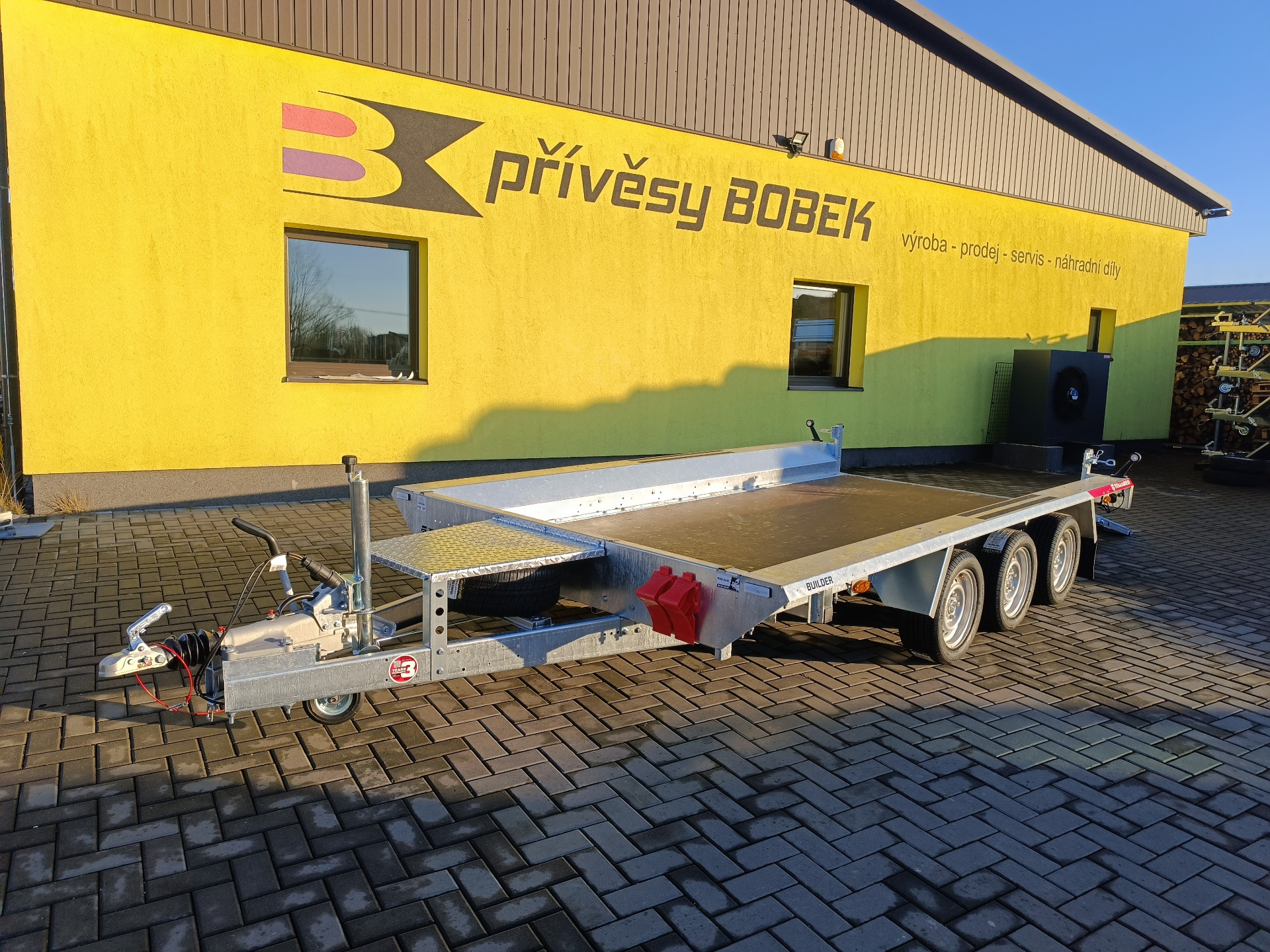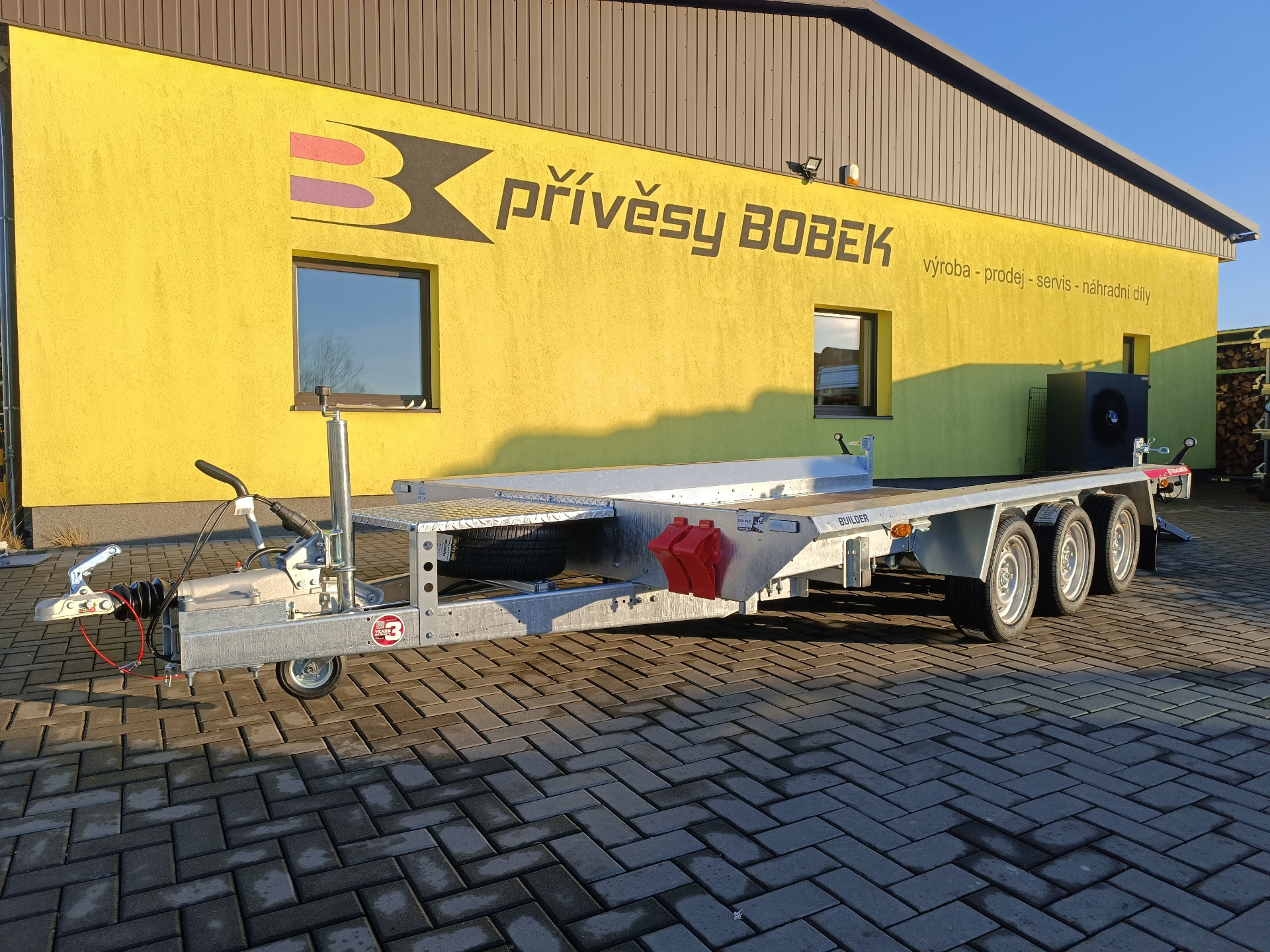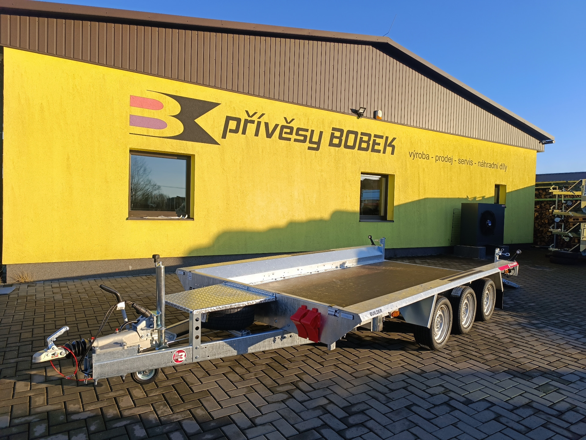 Přívěs určený pro přepravu stavebních strojů a velmi těžkých nákladů, se svařovaným rámem. Celková hmotnost 3500 kg, užitečná hmotnost 2744. Ložná plocha 4000x1822 mm. FULL LED osvětlení