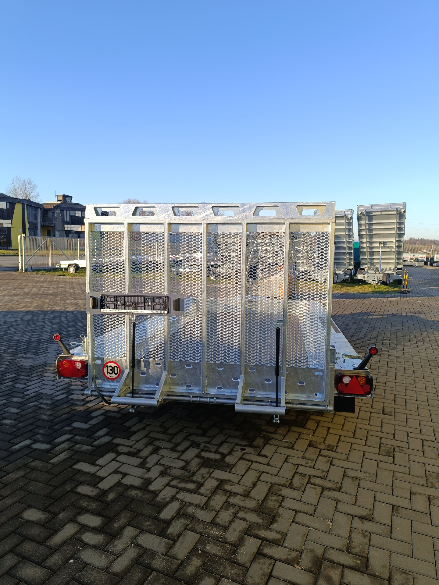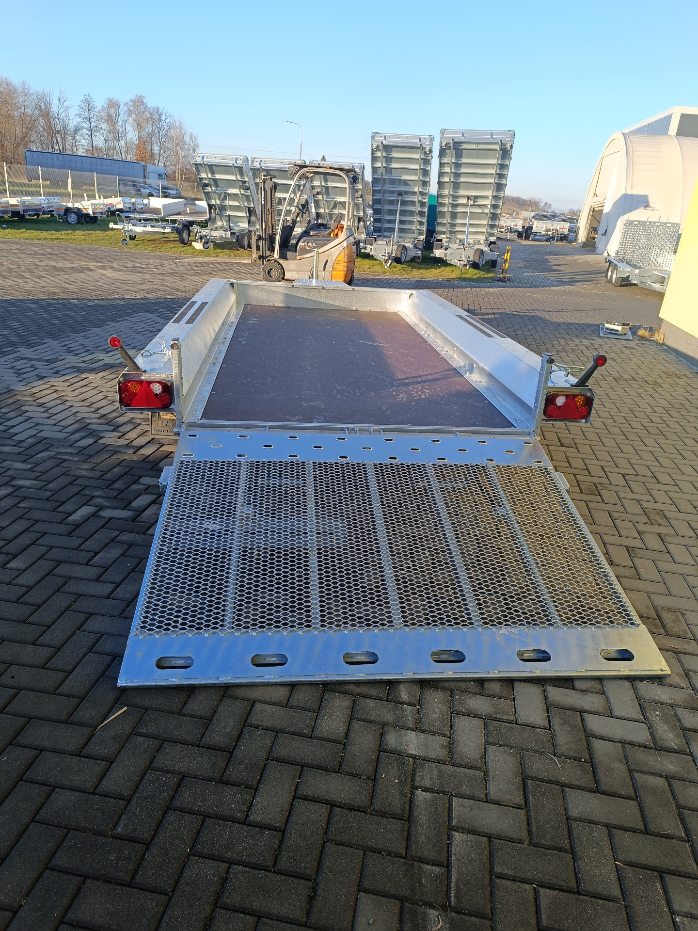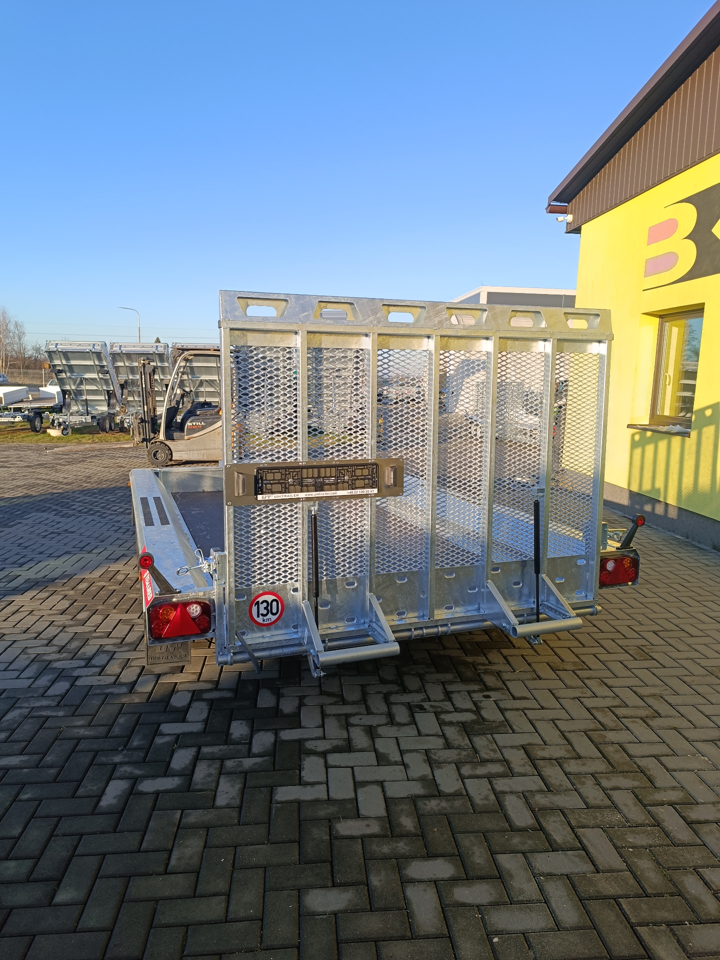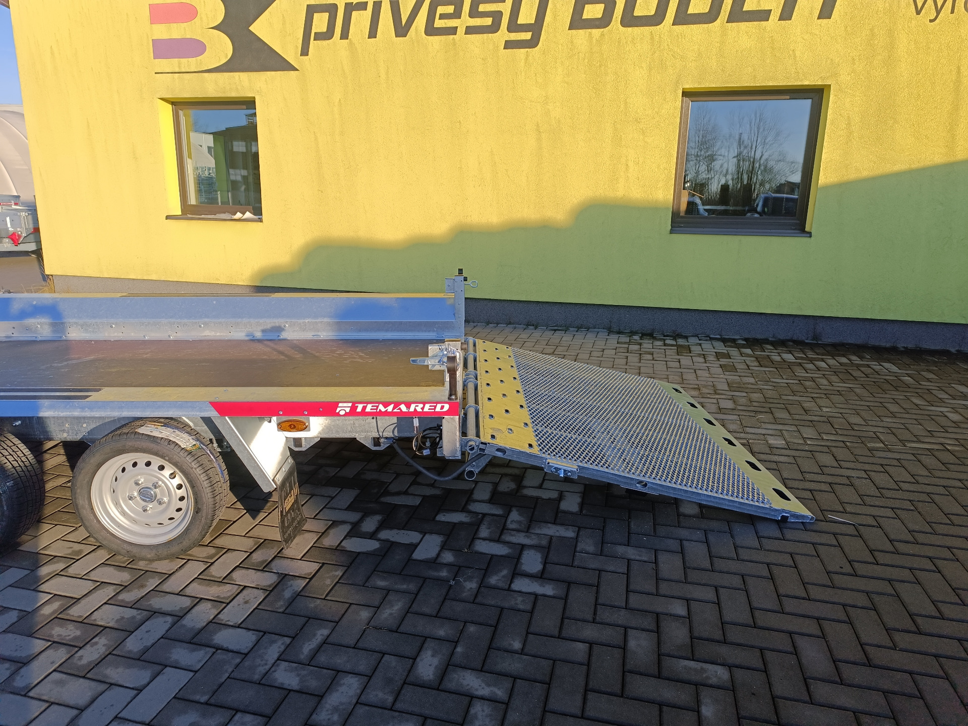 Přívěs určený pro přepravu stavebních strojů a velmi těžkých nákladů, se svařovaným rámem. Celková hmotnost 3500 kg, užitečná hmotnost 2744. Ložná plocha 4000x1822 mm. FULL LED osvětlení