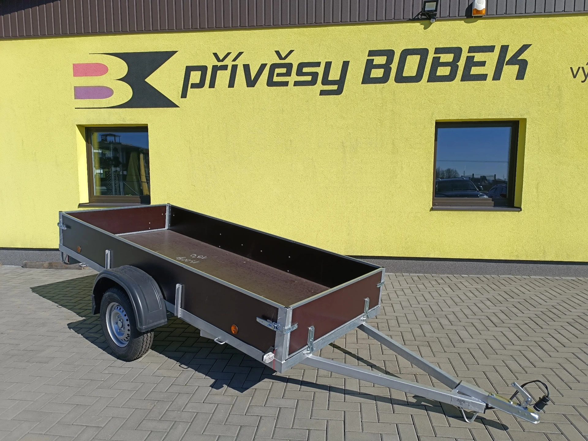 Přívěsný vozík s vnějším rozměrem korby 3020x1290 mm. Ložná plocha 2980x1250 mm. Zvýšené