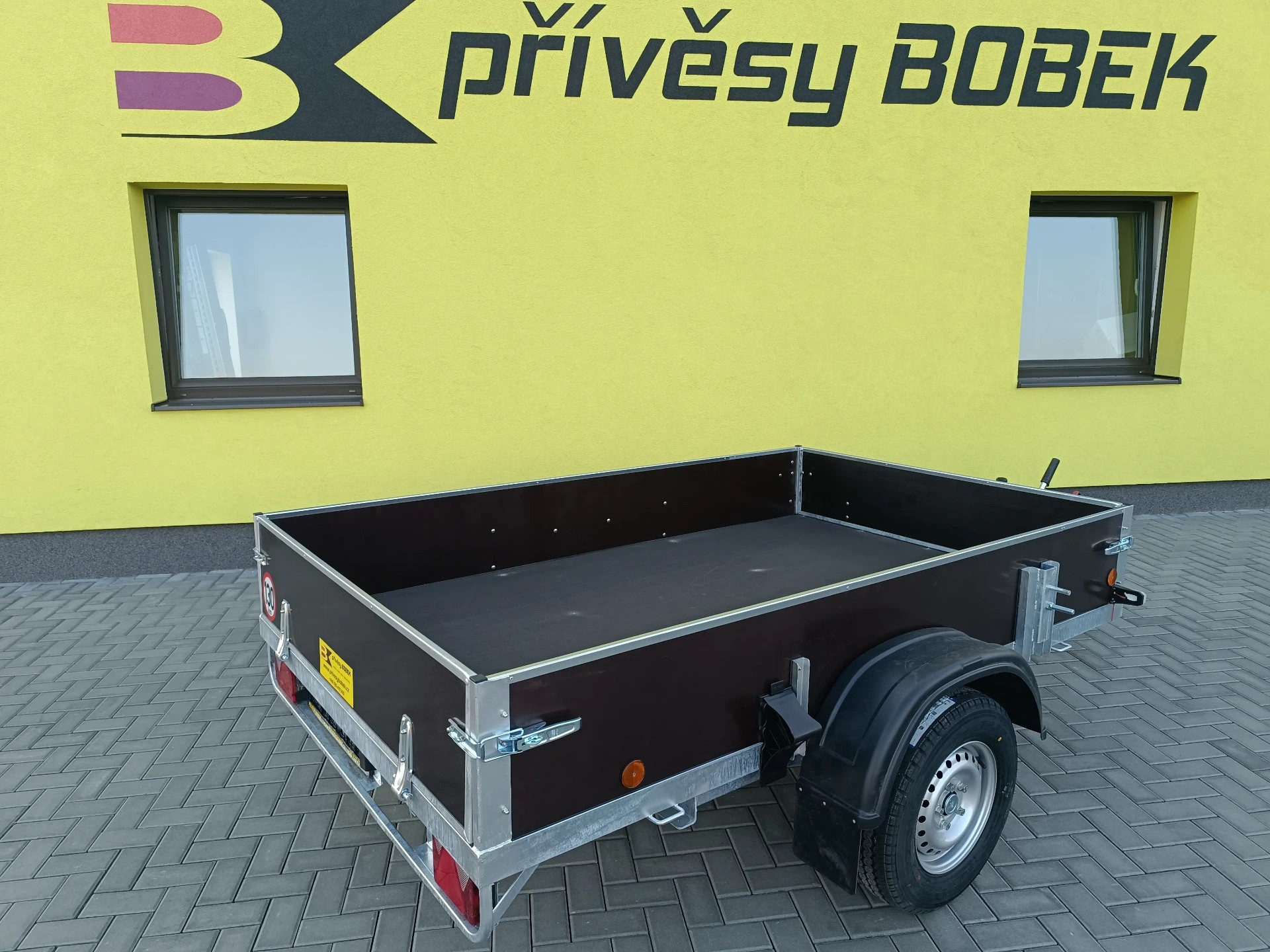 Brzděný přívěsný vozík s vnějším rozměrem korby