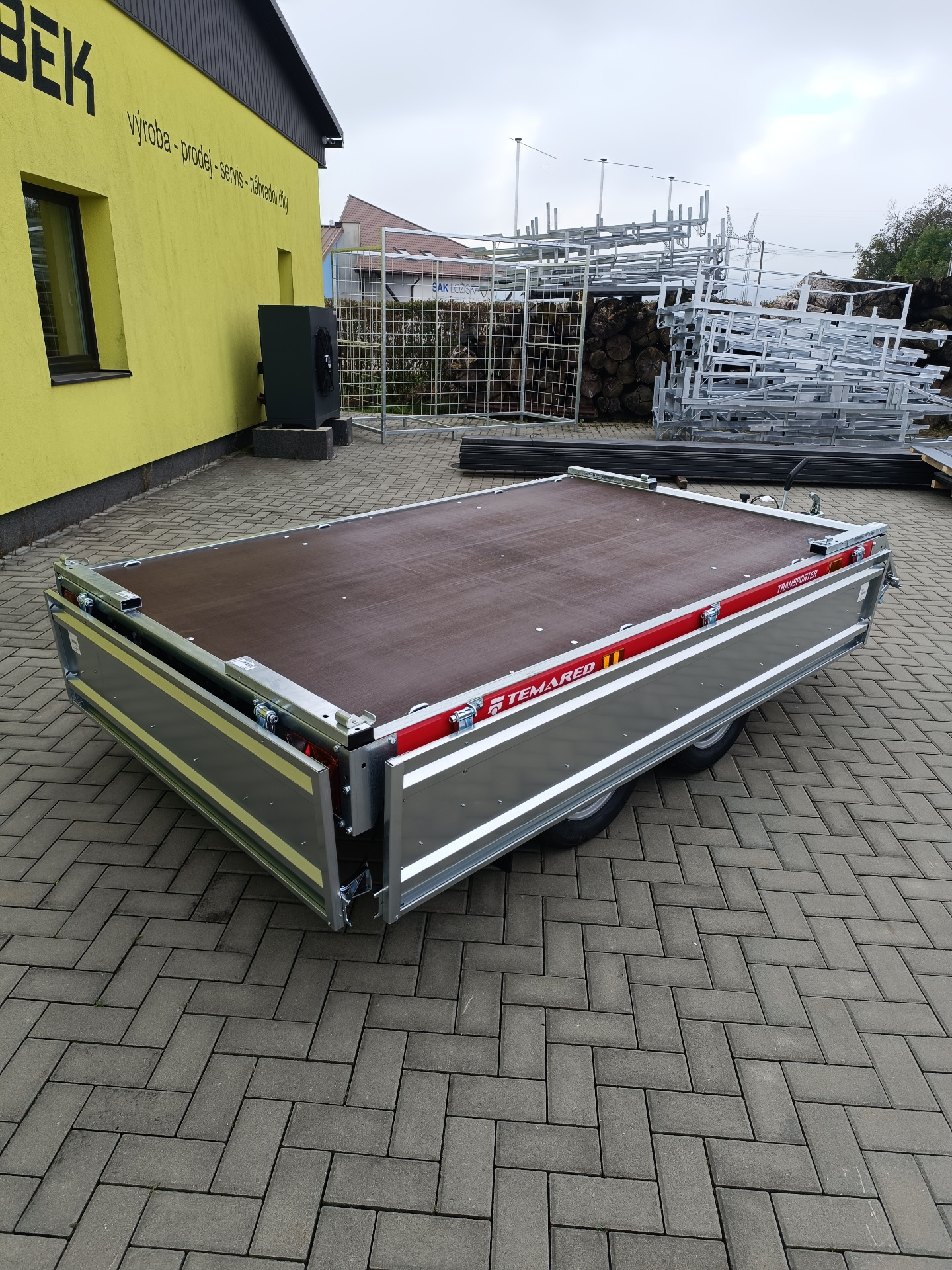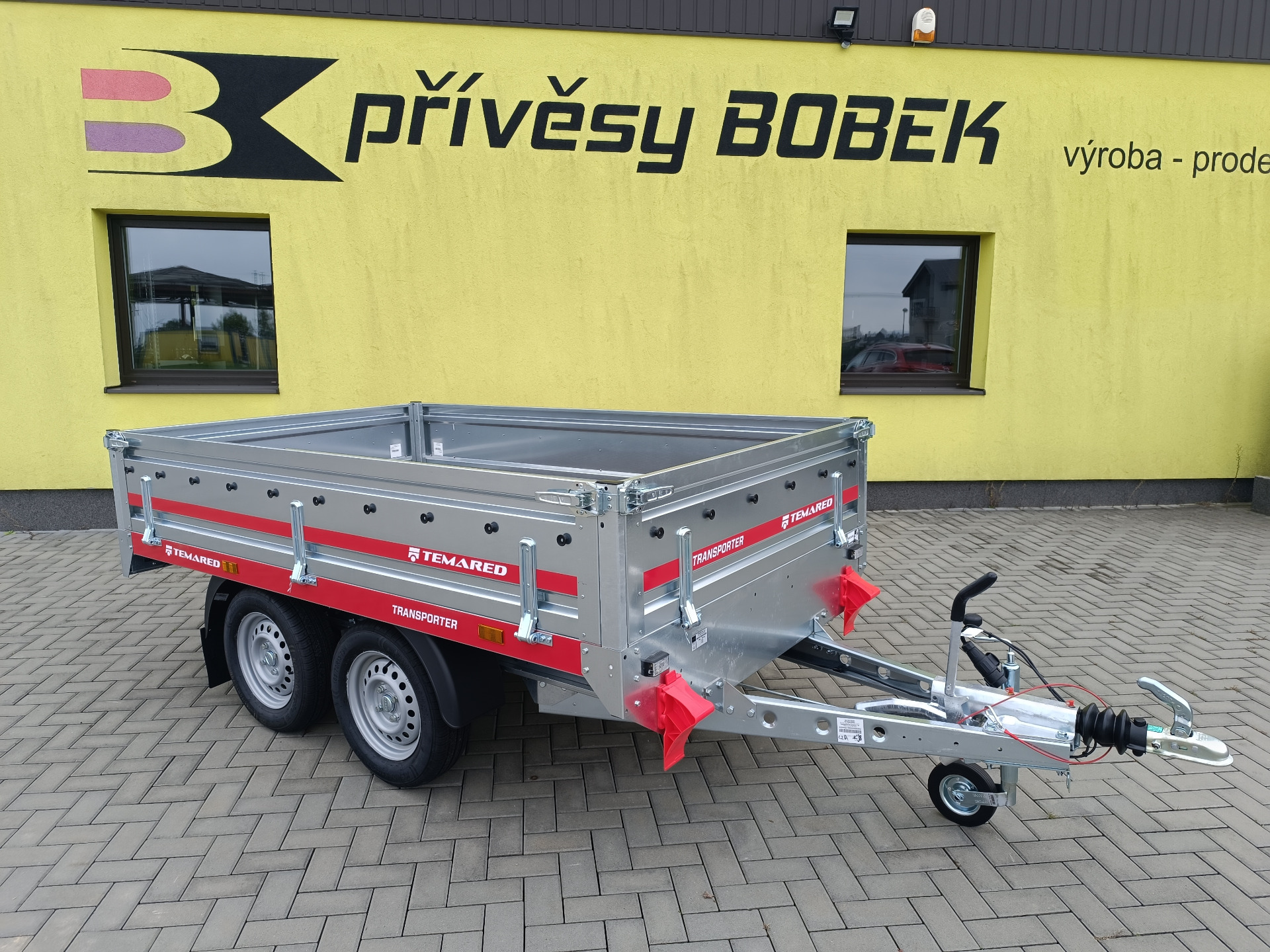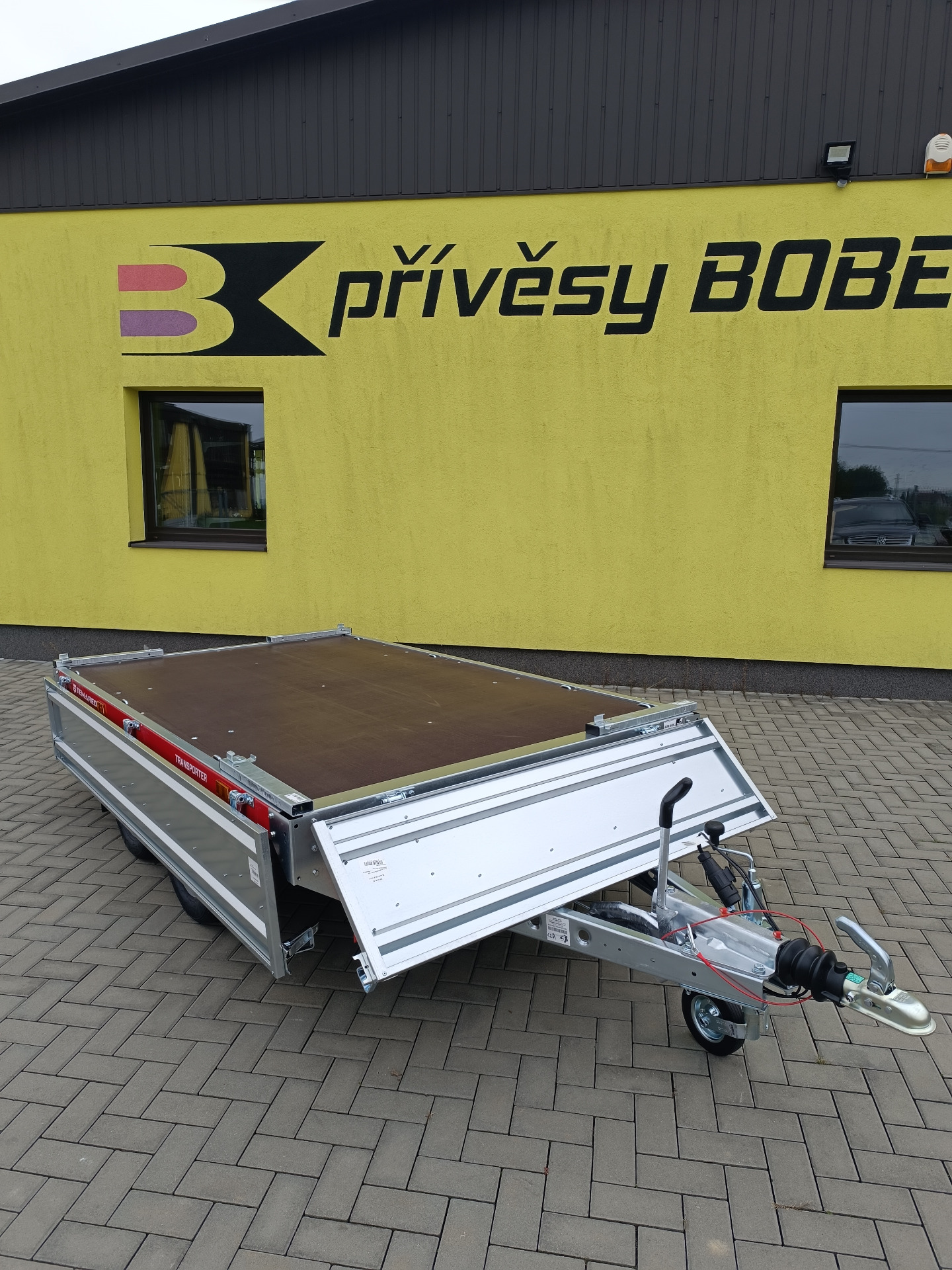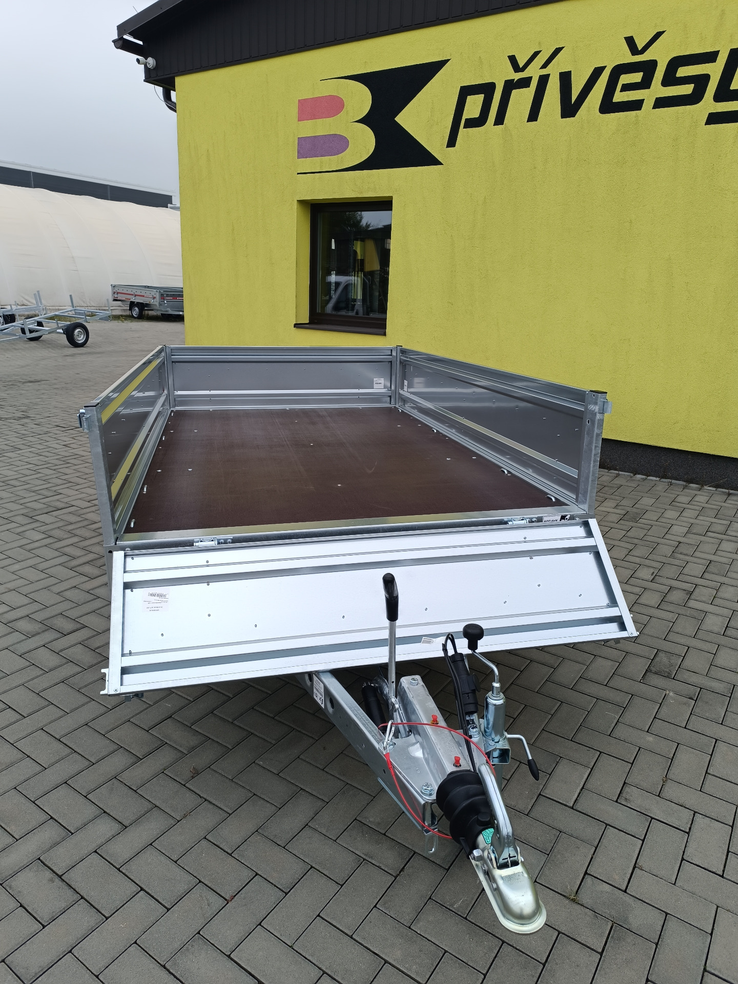 Univerzální přívěsy s koly pod ložnou plochou. Celková hmotnost 2000 kg, užitečná hmotnost 1636 kg. Ložná plocha 2545x1510, zvýšené bočnice na 400 mm.